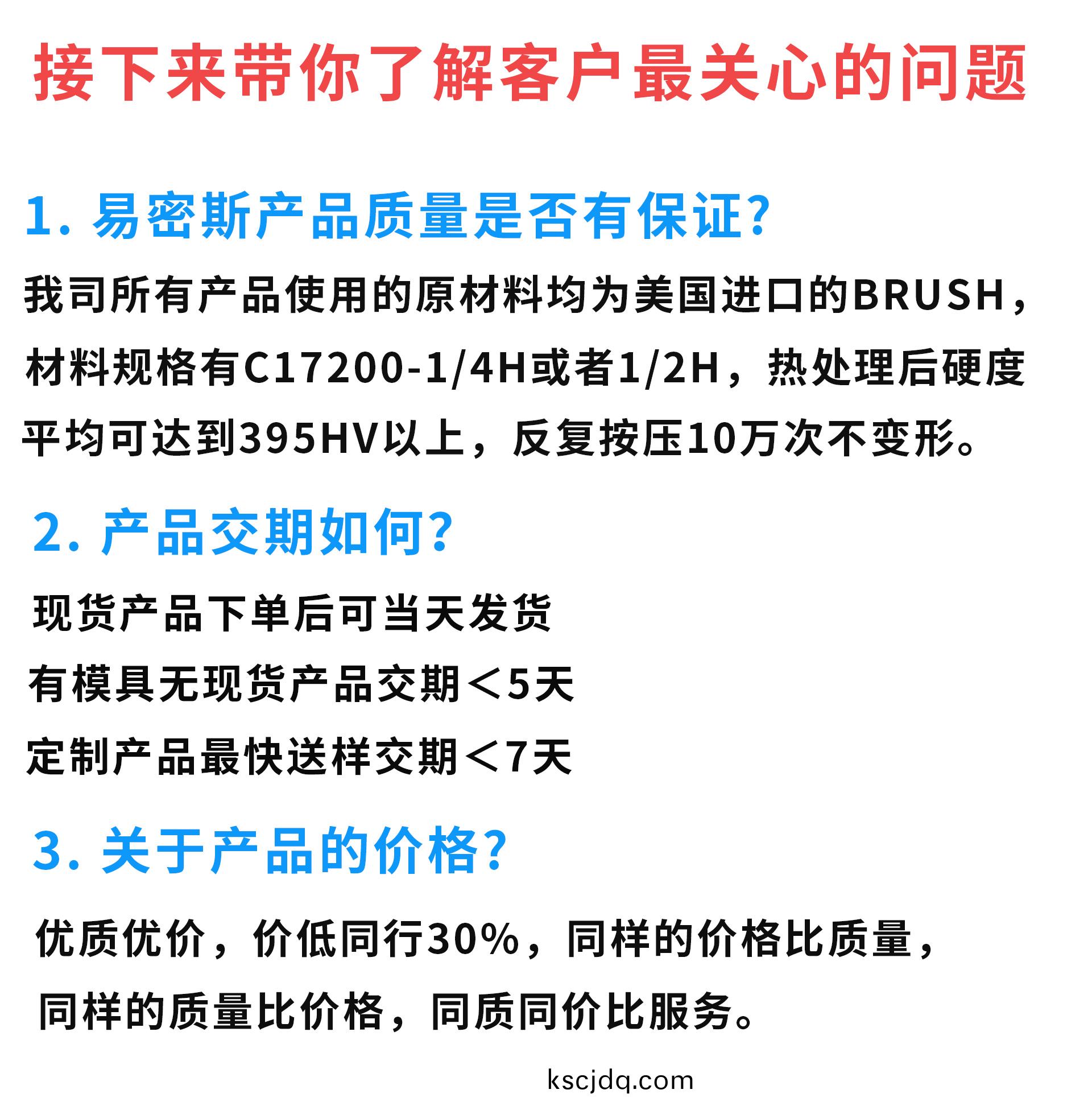 我們緻力于鈹銅(tong)簧片領(ling)域(yu),成(cheng)爲(wei)行(xing)業專傢,勇做行業的(de)領(ling)跑者(zhe)。 誠(cheng)信(xin)從事一切(qie)活動,成爲(wei)社會(hui)快(kuai)樂的(de)創造(zao)者(zhe)。
